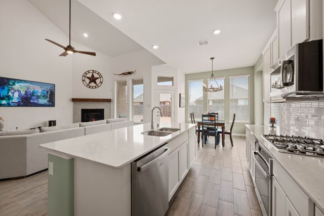 NEW PRICE & SELLER IS OFFERING UP TO $5,000 TO BUYER TO HELP BUY DOWN THEIR INTEREST RATE OR TO COVER CLOSING COSTS. THE SELLER IS ALSO WILLING TO COVER UP TO 3% OF YOUR REALTOR'S FEES! WASHER AND DRYER ARE ALSO INCLUDED!!! Beautiful full brick SENDERA RANCH SMART HOME with flexible floorplan! 4 BEDROOMS (2 down!), 3 LIVING AREAS & an OFFICE! Step inside this MOVE-IN READY home with ceramic wood-look tile throughout the main living areas & also the wet areas. Tons of energy efficient windows in this BRIGHT & OPEN DESIGN make this a perfect home for entertaining! Living area boasts corner fireplace w-gas logs to keep you warm on chilly winter evenings! GOURMET KITHCEN FEATURES GAS COOKTOP, OVEN, QUARTZ COUNTERTOPS, CORNER PANTRY, BUILT-IN MICROWAVE & A HUGE ISLAND W-BAR SEATING! FLEXIBLE FLOORPLAN with SPLIT BEDROOM Floorplan - 2 BEDROOMS ON THE FIRST LEVEL & 2 ON THE SECOND! DOWNSTAIRS PRIMARY SUITE complete with TALL CEILINGS, PRIVATE EN SUITE, & HUGE WALK-IN CLOSET! Primary bathroom boasts dual sinks, separate shower & stylish free-standing tub! GUEST SUITE is perfect for family visits or as a MOTHER-IN-LAW SUITE as the full bathroom is INSIDE the bedroom! Upstairs GAMEROOM offers a great entertaining space for March Madness Saturdays, a hobby space, a home gym or as a teen hangout space! MEDIA ROOM (currently used as an office) is already prewired for sound - just add your favorite equipment & plan your first movie night! 2 Upstairs secondary bedrooms are joined by a Jack-N-Jill bathroom & feature great closets, tall ceilings & 2 inch blinds! Large Backyard with COVERED PATIO with space for a pool, playset, or putting green... you choose!! Your resident pooch will enjoy exploring the backyard & playing fetch too! RAIN GUTTERS keep water properly routed for optimum drainage. Epoxy Garage Floors! Neighborhood amenities include sidewalks, pools, parks, playgrounds, miles of walking & jogging trails, clubhouses, basketball courts & sports fields! ZONED FOR THE AWARD-WINNING NORTHWEST ISD! Easy accessibility to ALLIANCE TOWN CENTER w-lots of dining, shopping & entertainment options.