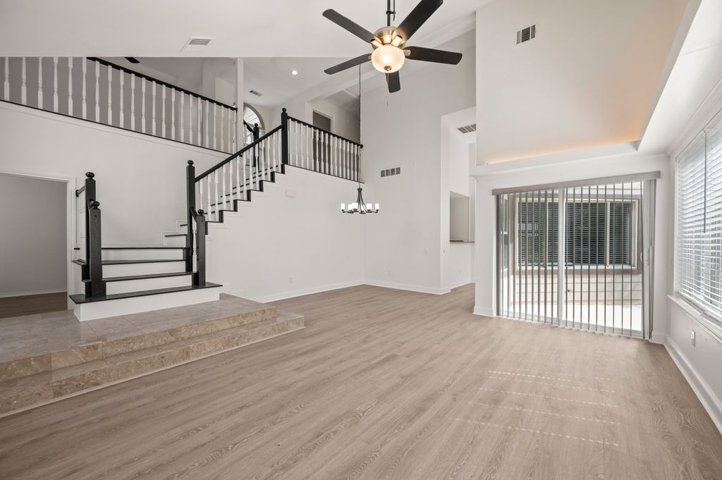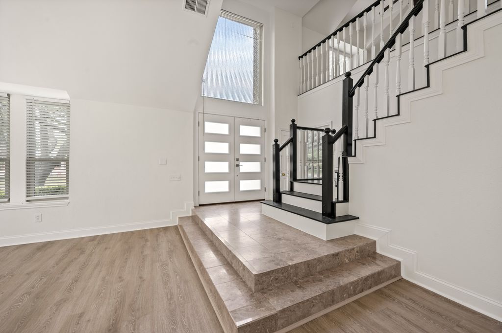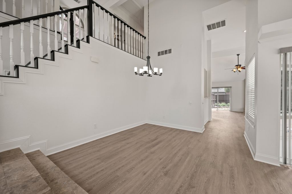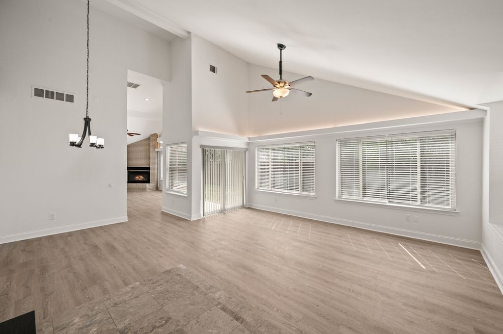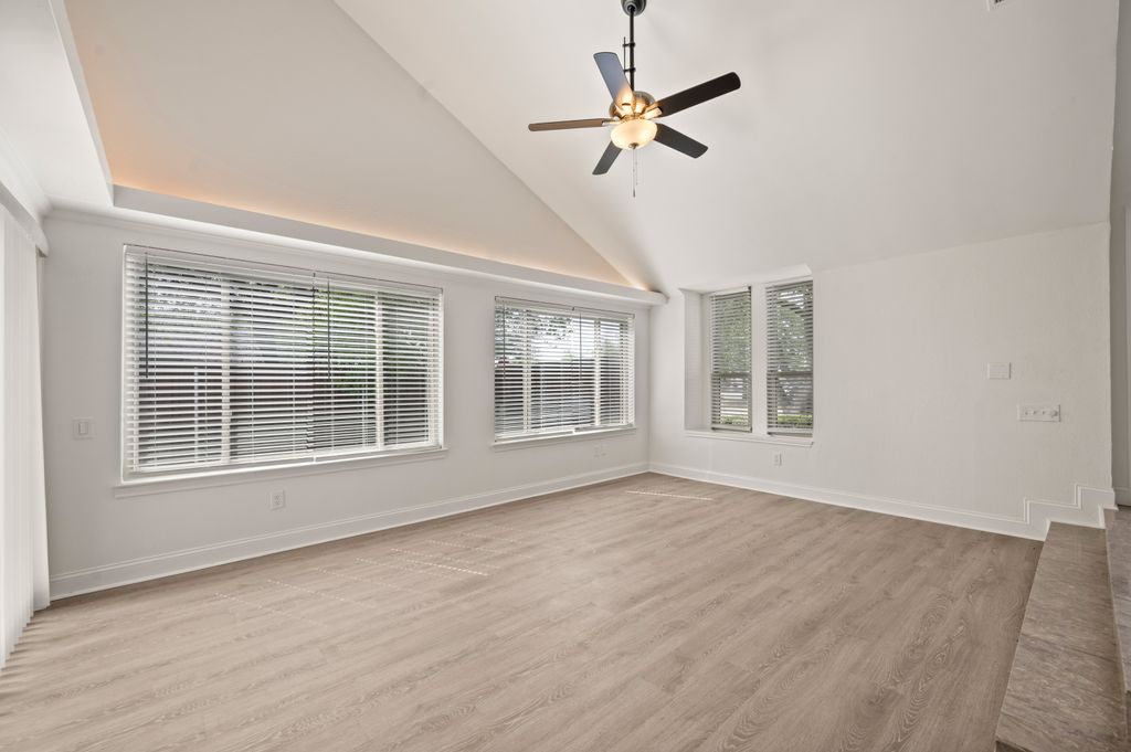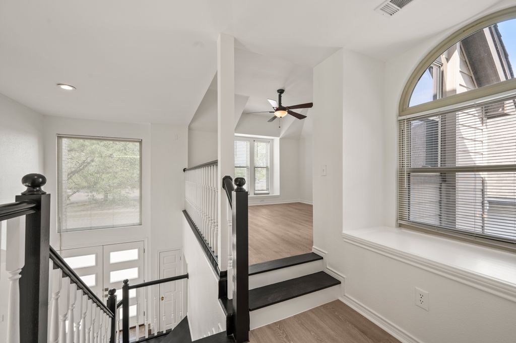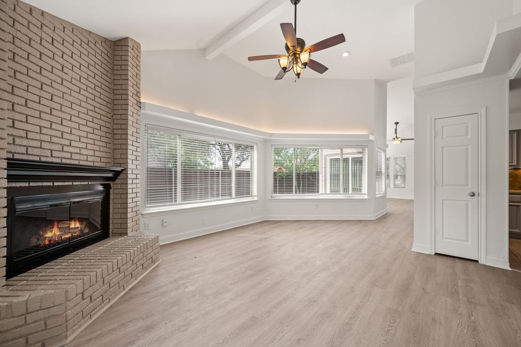 Welcome to 322 Cimarron Trail! A beautifully updated, move-in ready home nestled on a spacious corner lot in the heart of Valley Ranch! Just ONE BLOCK from the super popular elementary school! And 1 block to Cimarron Park (tennis, basketball & volleyball courts along with field space), Cimarron Aquatic Center, & Cimarron Recreation Center (community gym)! As you step through the modern double front doors, you’re greeted by soaring ceilings, tons of natural light (THROUGH NEWER WINDOWS), and a fresh, inviting feel throughout! The main living areas feature new wood-look flooring, neutral paint, and a dramatic two-story entry with stylish black and white stair railings. 2 downstairs living spaces (1 with a fireplace) create comfortable places to relax or entertain! The kitchen is ready for you with stainless steel appliances, updated lighting, and freshly painted cabinetry. Gas stub present behind the electric range! The primary suite is tucked away downstairs, offering its own double-sided fireplace, a soaking tub, dual vanities, a HUGE shower and a large walk-in closet. Upstairs, you’ll find additional bedrooms plus a loft-game room area, ideal for a home office, gym, or playroom! Step outside and enjoy your private backyard with a large open patio space, a pergola area for shade, and plenty of green space to play, garden, or entertain. Don't miss your new board-on-board privacy fence installed in 2025! 2 sliding glass doors access the backyard! Located just minutes from shopping, dining, parks, and major highways... you’ll love the convenience! This lovely home checks all the boxes - schedule your showing today! HIGHLIGHTS: 3 Bedrooms + Game Room! 2.5 Bathrooms! 3 Living Areas! 2 Fireplaces! Downstairs Owner's Suite! Fresh Paint Inside and Out! New Exterior Siding & Paint! New Flooring! New Stainless Steel Appliances! New Roof in 2024! Gas or Elec Dryer Connections! Large Fenced Yard! Pergola! Newer HVAC Items! Prime Valley Ranch Location!