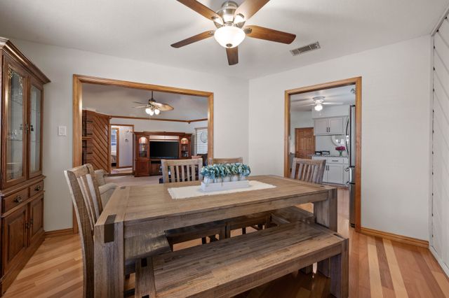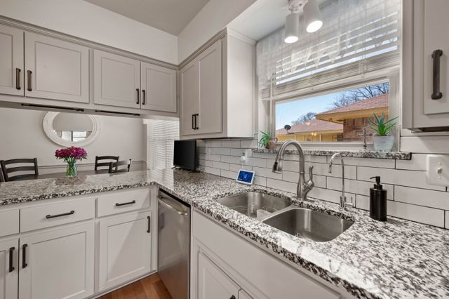 THIS PROPERTY QUALIFIES FOR UP TO $6,000 GRANT FOR A BUYER, ALONG WITH DOWN PAYMENT ASSISTANCE PROGRAM! SEE MY LENDERS FLIER IN THE PICTURES AND DOCUMENTS SECTION!! PRIDE OF OWNERSHIP SHINES THROUGH in this well-kept & move-in ready property! 40 SOLAR PANELS installed = SAVINGS on your electric bills! 3 BEDROOMS, 2 LIVING & 2 DINING! UPDATED KITCHEN features SPRAWLING GRANITE COUNTERTOPS, UPDATED CABINETRY, UPDATED COOKTOP, SUBWAY TILE BACKSPLASH & STAINLESS STEEL APPLIANCE PACKAGE! UPDATED DUAL PANE ANDERSON WINDOWS THROUGHOUT! Spacious living room boasts CORNER WOOD-BURNING FIREPLACE & wood accent wall, along with gorgeous crown moulding. The formal dining room is located just off the kitchen & is perfect for entertaining! Breakfast nook offers another space for a quick lunch or to enjoy your morning coffee. PRIMARY BEDROOM offers a serene space after a long day & has a private en suite, DUAL walk-in closets, & RECENTLY UPDATED FLOORING. The primary bathroom en suite features UPDATED countertops, undermount sinks & an oversized shower! Wood accents throughout the home point to the charm & uniqueness of this property! 2 secondary bedrooms each boast ceiling fans, generously sized closet space & they are both conveniently located near the UPDATED SECONDARY BATHROOM. Sunroom is currently used as a combined office & living area & offers updated tile flooring. This space is air-conditioned square footage & provides additional flexible space for entertaining, guests, or your favorite hobbies. Enjoy the cool spring evenings on the COVERED PATIO in the backyard looking out to your fenced yard, perfect for your resident pup to explore and play. NEW PRIVACY FENCE was installed in 2021 w-METAL POSTS to increase the longevity of the fence! UPDATED STEEL-INSULATED GARAGE DOOR! ADDITIONAL ATTIC INSULATION HAS BEEN ADDED over the living space & garage! FULL CEDAR WALK-IN CLOSET in the attic for additional storage! UPDATED ATTIC STAIRS! Neighborhood pond & park is virtually across the street! Easy highway accessibility! Conveniently located near COSTCO, Chik-Fil-A, Starbucks & More! DUNCANVILLE ISD!