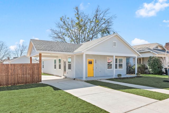 FIRST local home for sale in partnership with the Fort Worth Community Land Trust, a non-profit organization opening doors for Buyers who never thought home ownership possible. How it works: the Trust maintains ownership of the land, Buyers sign a ground lease to purchase the structures built on the land. Since the land value isn’t included in the price OR the mortgage financing, costs are considerably reduced for the purchaser! PLUS, SELLER PAYS TITLE-SURVEY and there’s up to $25K DOWN PAYMENT ASSISTANCE for qualified Buyers. This KEEPS THE LOAN EVEN LOWER, NEARER $210K! Some of the assistance can be used for rate buy-down or closing costs too. Criteria include NON-INVESTORS who have NOT OWNED A HOME IN 3 yrs, who meet the following INCOME LIMITS: Households with 2 people can earn max $68,300 - 3 no more than $76,850 - 4 is a max of $85,350 – 5 max $92,200. CONTACTING YOUR REAL ESTATE AGENT IS A MUST - they have access to income charts, program details and Lender info (must be approved by the Trust). Once vetted, your Agent can show this amenity-rich 1474-sqft ONE STORY less than 5-mi from Downtown Fort Worth in a Historic neighborhood. The property has a full-length covered front rain-porch, ENORMOUS yard, fiber cement siding, 6-ft wood fence, 3 beds, 2 full baths, 2 covered parking spaces. Which includes a 1-car oversized detached Garage with insulated panels & pedestrian door…and a 1-car Porte Cochere with direct access indoors. Inside, the Kitchen is wide OPEN to living-dining rooms with water line to fridge, microwave, vent mechanism, dishwasher, disposal, massive counter-height island eating, sizable hallway pantry. Primary is ensuite. There are 2 walk-in closets and both baths have Quartz countertops. Laundry is separate, full-size. PERKS! Foam insulation, ring doorbell, LED lighting, low-E double-pane windows, woodsy luxury vinyl plank, window blinds, heat pump, electric water heater, curbs, sidewalks, extra driveway parking. Builder’s Warranty included. 3% Buyer's Agent commission!